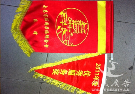旗幟制作工序比較復(fù)雜,首先圖案徽記及文字與旗面尺寸相適應(yīng),因此先是對圖形及文字進(jìn)行放大或縮小,然后進(jìn)行分色描黑白稿,或者制圖雕刻制成網(wǎng)印版。在絲網(wǎng)印制作過程中,涉及印制臺板的寬窄設(shè)定,印漿的配制,刮板的選用以及后處理的固色,水洗,熨燙平整等工序。